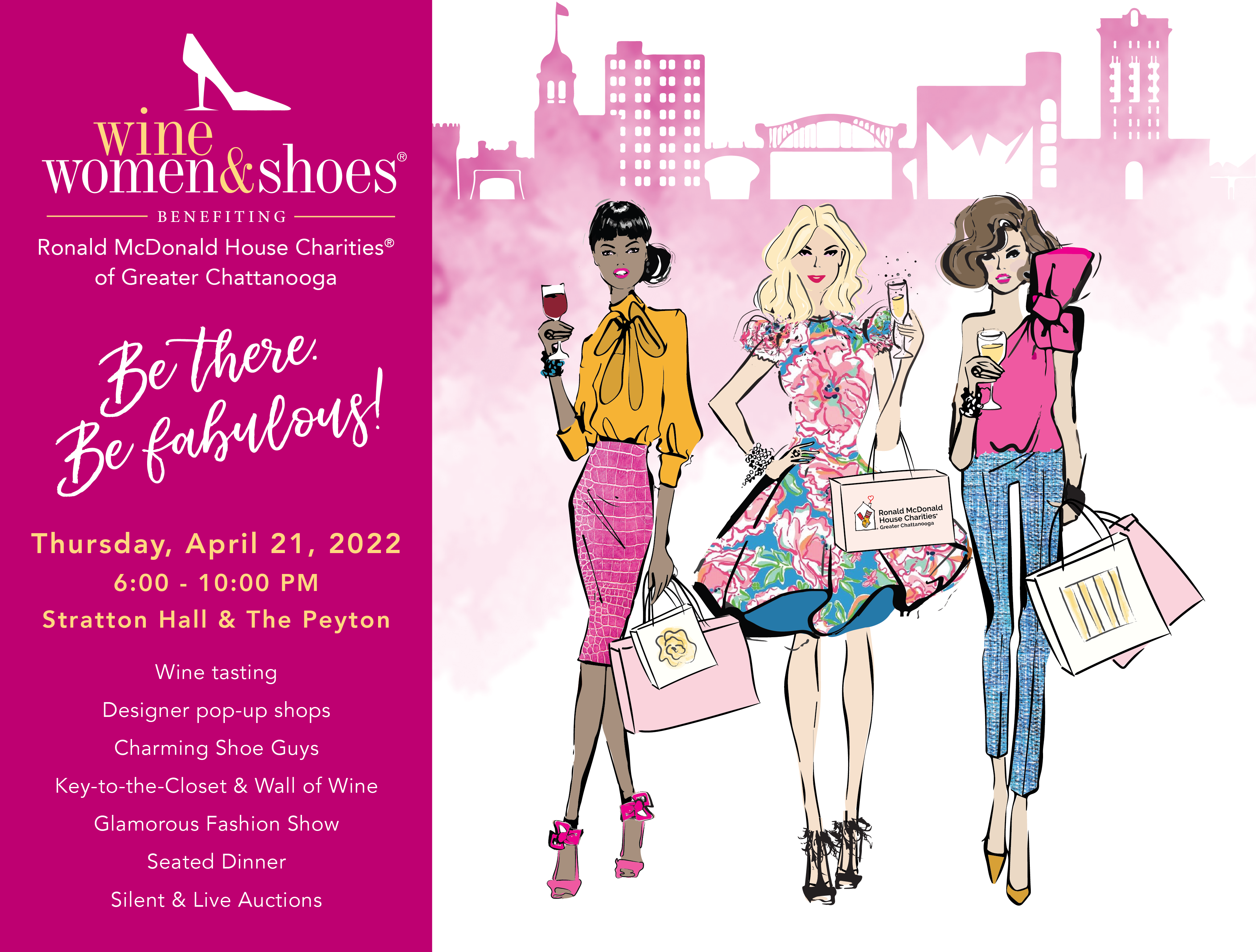 This event has passed. Buy Tickets Sponsorships Contact us Thank you to our sponsors Shop Our Designer Marketplace Wine Partners Thursday, April 21, 2022 | 6:00 pm – 10:00 pm Ronald McDonald House Charities Greater Chattanooga View Organizer Website