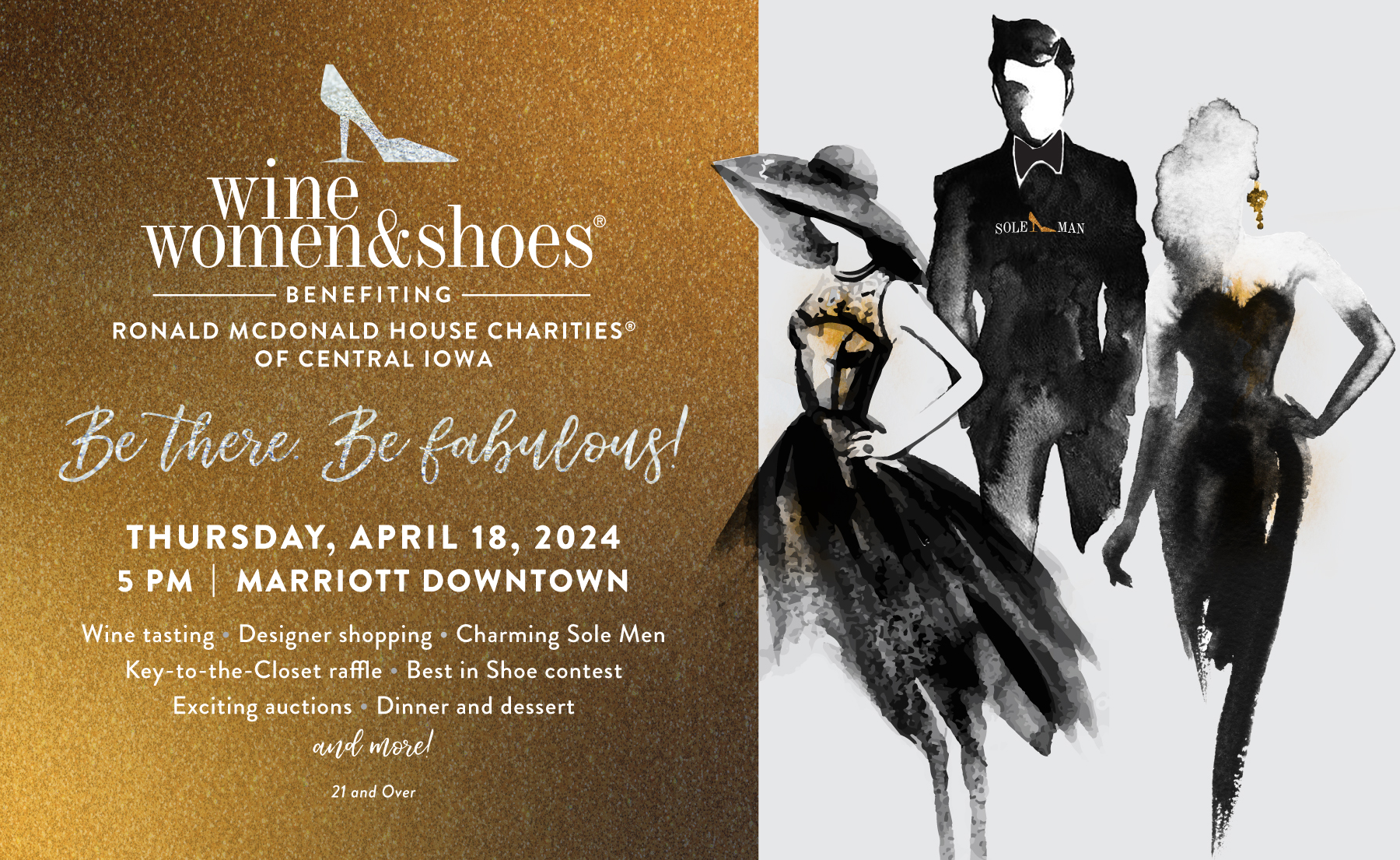 This event has passed. Contact Us Sponsor Opportunities Buy Tickets Support a Sole Man DIAMOND STILETTO PRESENTING SPONSOR KEY TO THE CLOSET SPONSOR PLATINUM SPA EXPERIENCE SPONSOR GOLD GLADIATOR SPONSORS SILVER SLINGBACK SPONSORS SUPPORTING SANDAL SPONSORS Vintner Partners Thursday, April 18, 2024 | 5:00 pm – 9:00 pm Ronald McDonald House Charities of Central Iowa View Organizer Website Marriott Des Moines Downtown 700 Grand Ave Des Moines, IA 50309 United States + Google Map Add to calendar Google Calendar iCalendar Outlook 365 Outlook Live