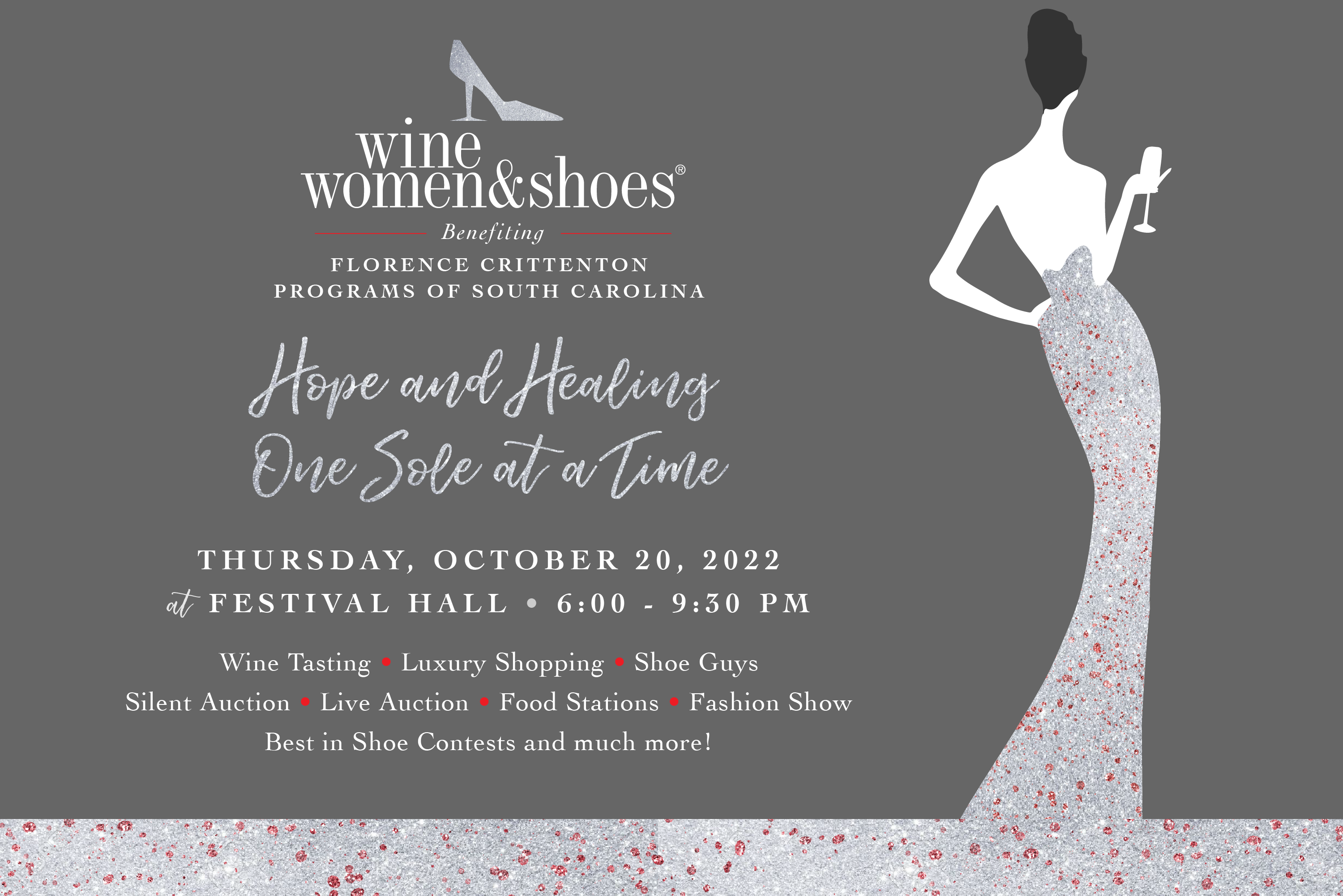 This event has passed. Contact us Reserve your Tickets Sponsorships Thank you to our sponsors Title Sponsor In-Kind Sponsors Marketplace Partners Fashion Show Partners Wine Partners Florence Crittenton Programs of SC (843) 722-7526 View Organizer Website Thursday, October 20, 2022 @ 6:00 pm – 9:30 pm Festival Hall 56 Beaufain St Charleston, South Carolina 29401 United States + Google Map