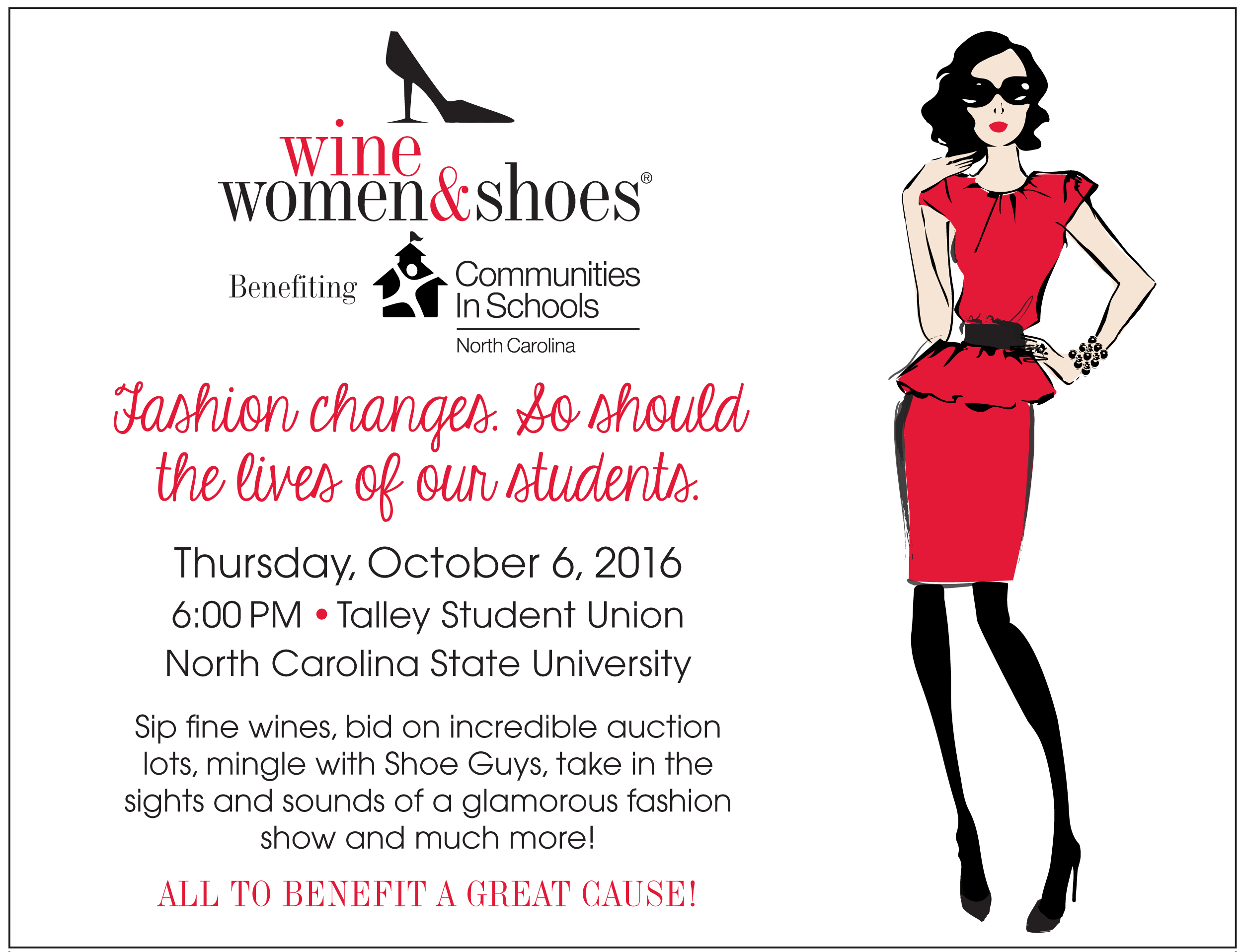 This event has passed. Facebook Buy Tickets Contact Jennifer Crumpler 984-664-9418 Email Presenting Sponsor Sponsors Fashion Partners Ashworth’s Clothing Marketplace Partners Wine Partners Add to calendar Google Calendar iCalendar Outlook 365 Outlook Live Details Date: Thursday, October 6, 2016 Time: 2:00 pm - 5:00 pm Event Tags:North Carolina Organizer Communities in Schools North Carolina View Organizer Website Venue Talley Student Union at NC State 2610 Cates Avenue Raleigh, NC 27695 United States + Google Map